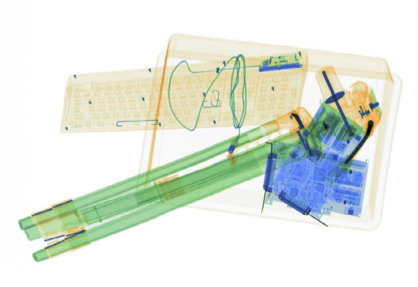 The primary view consists of a central under belt generator coupled with a high resolution U shaped detector array bringing the X-Ray source as close as possible to the objects being scanned. Using a central under belt source provides natural magnification of object scanned across the maximum number of detector pixels available ensuring the highest possible resolution.